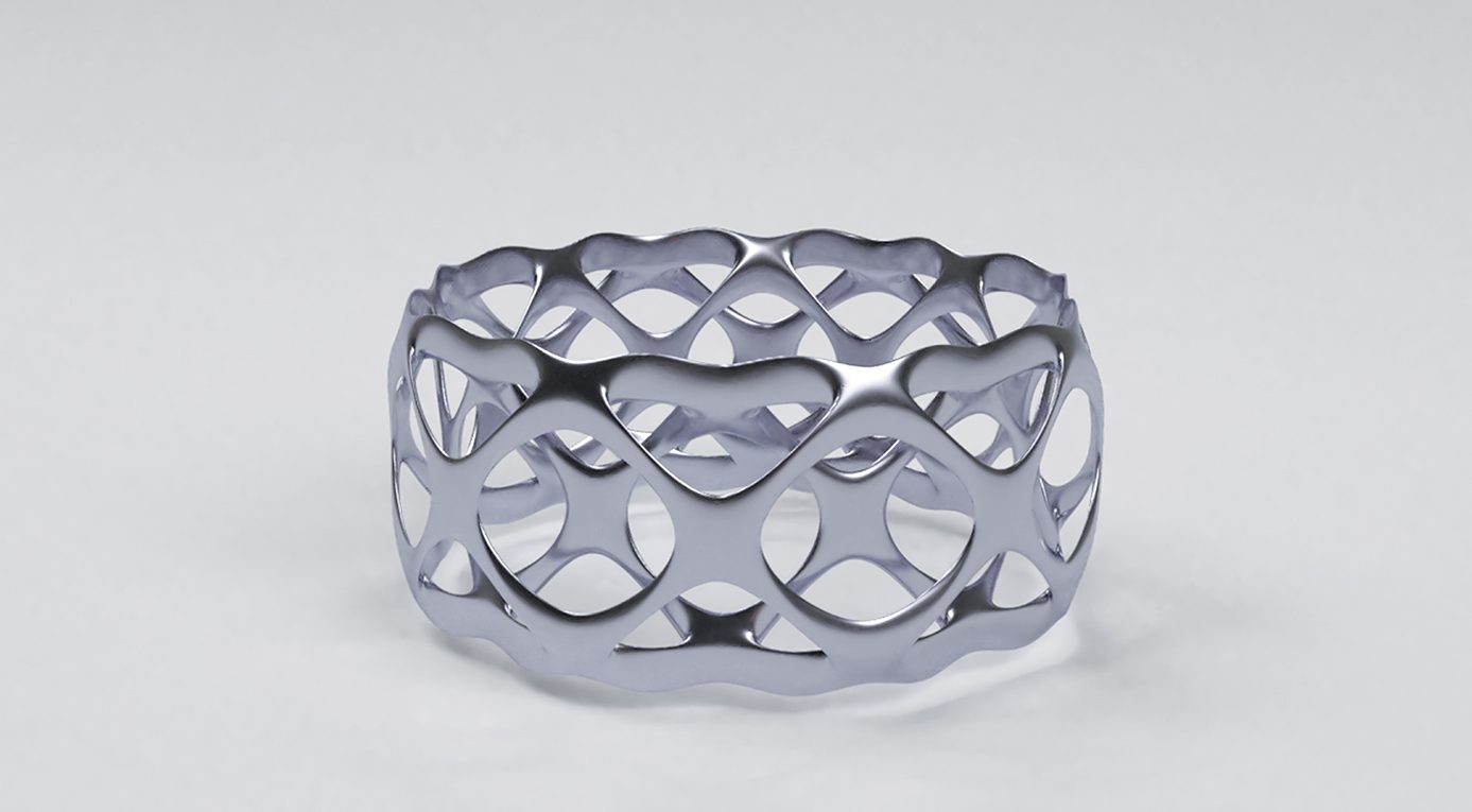 Platinum Cuff Posted May 10, 2018 by Jimenez_Diane23 This piece was 3D rendered using Blender. The cuff was inspired by the way cervical cancer cells aggressively form.